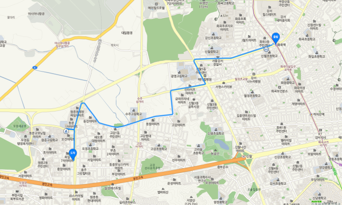 화곡역 하차 후 70번 버스 오시는 길
